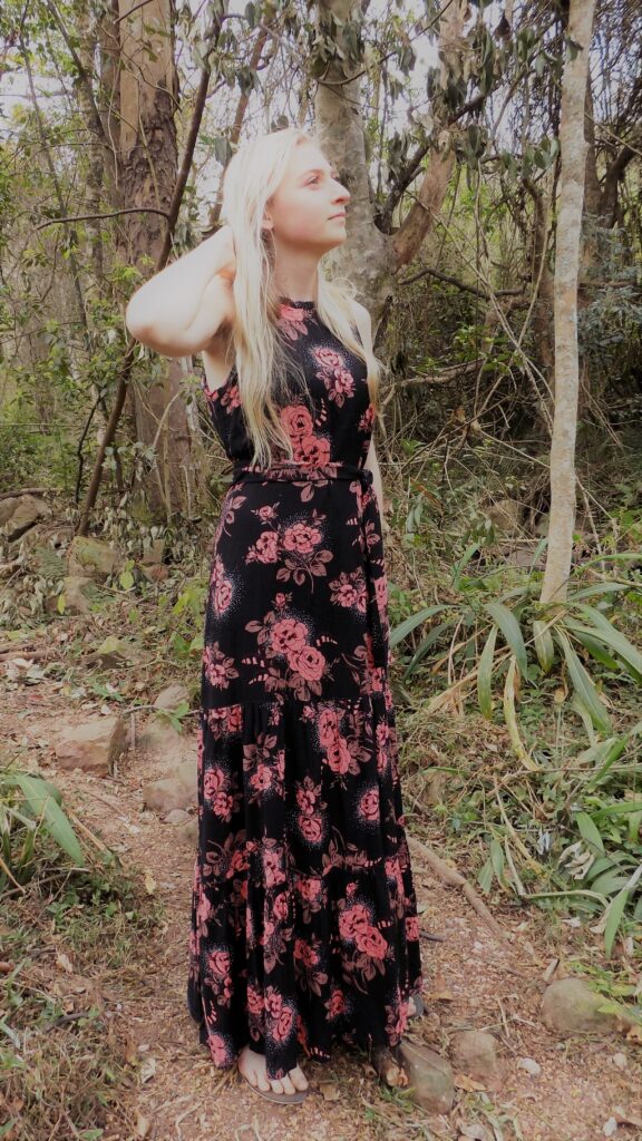 Maxi Styled Viscose summer dress with a waist tie belt.